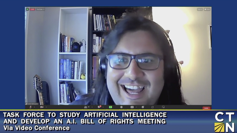 Vahid Behzadan, Ph.D., speaks as part of a task force meeting. (Courtesy of Connecticut Network)